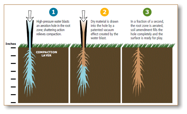 DryJect penetrates deep, and three- dimensionally into the root zone to fracture soil and deliver necessary amendments.